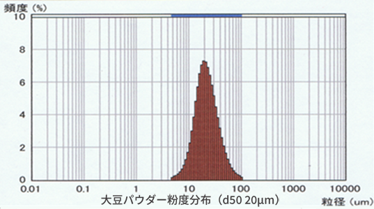 独自開発の気流式粉砕機「ミナクロンミル」(特許取得)により、丸大豆を約20μmまで超微粉砕。