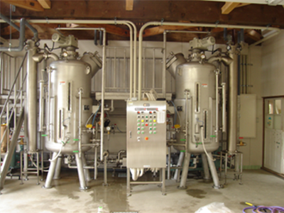 真空式製塩装置は、真空状態での低温蒸発により、海水・にがりなどから高品質な塩を効率よく製造する装置です。